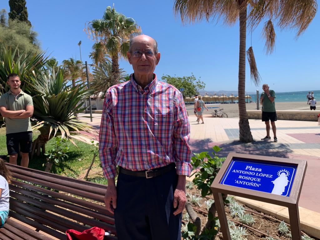 Antonio López Rosique ‘Antoñín’, ciudadano ilustre de nuestro municipio, ya tiene una plaza que lleva su nombre en el Paseo Marítimo ‘Virgen del Carmen’ de Torre del Mar. El torreño, que ha sido concejal en el Ayuntamiento de Vélez Málaga y actor principal de acontecimientos vitales vividos en las últimas décadas en Torre del Mar y en Vélez Málaga, ha recibido hoy un más que merecido homenaje en su pueblo. Al acto ha asistido una amplia representación del Partido Popular, con nuestro presidente, Jesús Lupiáñez; nuestro presidente de honor, Miguel Pacheco; nuestra secretaria general y parlamentaria electa, Rocío Ruiz; la concejala y diputada, Lourdes Piña; o los concejales Pepi Terrón, Luis García y Jorge Pérez, además de otros responsables y miembros del partido.