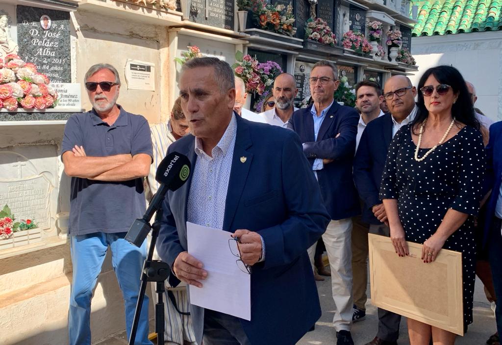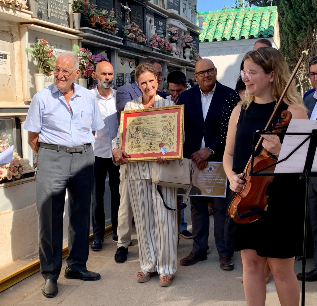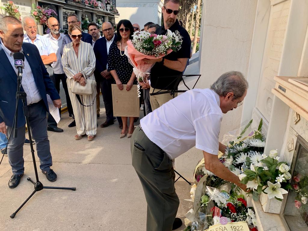 Hemos acompañado en estos actos del Centenario a una comitiva hasta el cementerio municipal para realizar una ofrenda de flores a Juan Barranquero Aponte, que fue fundador, jugador y primer presidente del Vélez CF. A mediodía, en el Centro el Exilio de la Fundación María Zambrano, hemos asistido a un nuevo acto, con la presencia de Fernando Hierro.