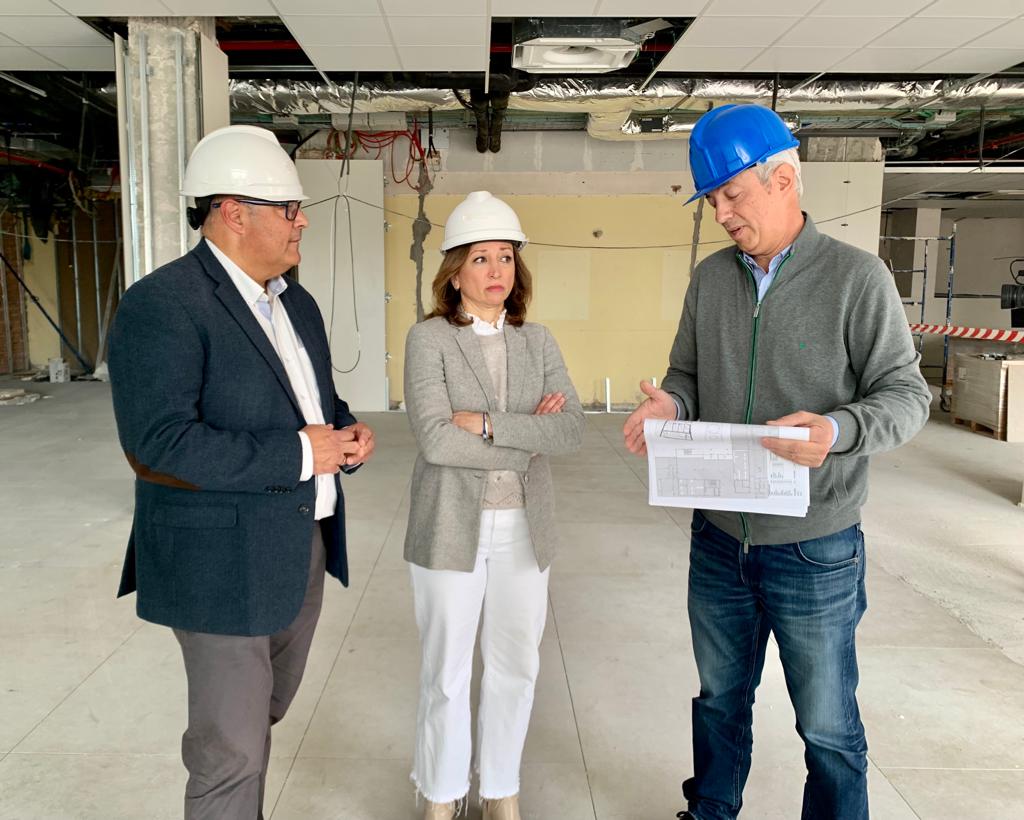 existente. Navarro junto a Lupiáñez han visitado esa obra actual de acceso, lo que será la entrada principal, de la que tras eliminarse esa gran rampa quedará acceso a pie de calle. Esta obra terminará en los próximos meses y supone una inversión de casi 400.000 euros.