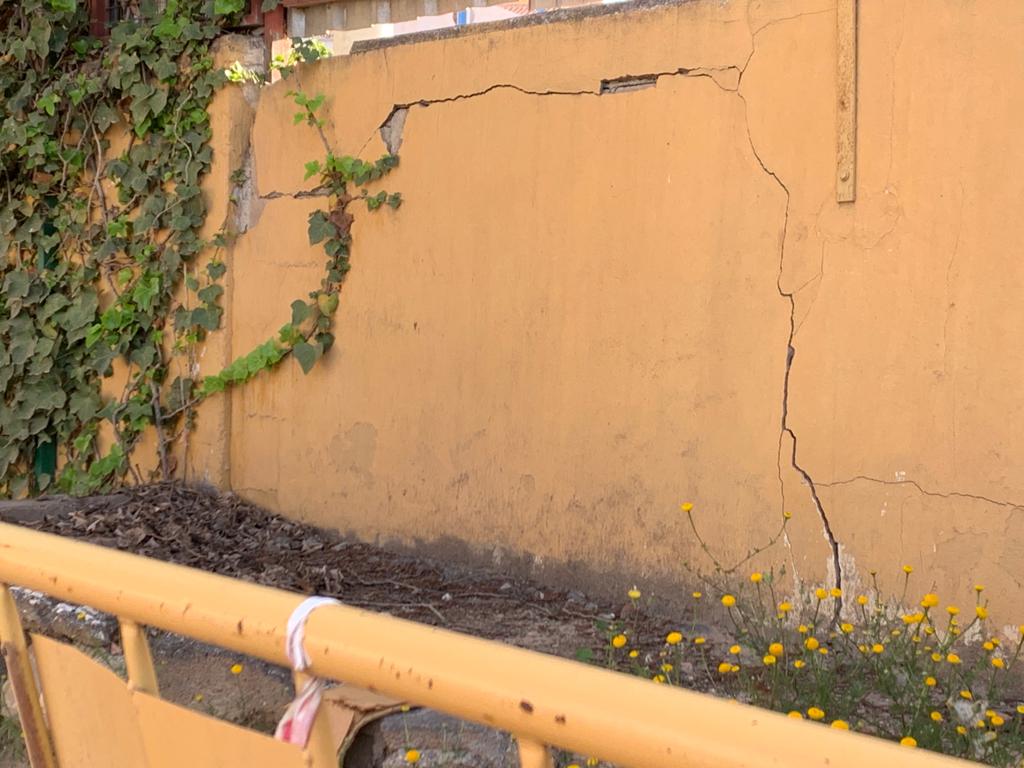 Nos preocupa, al igual que a los responsables y alumnado del centro, la delicada situación de un muro exterior, agrietado y en muy mal estado. Instamos al Ayuntamiento Vélez-Málaga a que, de inmediato, proceda a su reparación. El muro, debido a un problema en el acerado exterior de la calle contigua por unas obras de saneamiento, ha ido cediendo hasta encontrarse en un estado de riesgo para los casi 1.000 alumnos que a diario estudian en el centro.