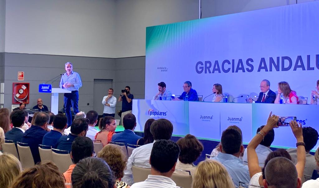 El Partido Popular ha querido agradecer hoy a sus interventores y apoderados el trabajo realizado en las elecciones del 19 de junio y la gran victoria obtenida en los comicios, donde obtuvimos una mayoría suficiente para que Juanma Moreno continúe con la transformación de Andalucía. Una amplia representación del Partido Popular de Vélez Málaga, con nuestro presidente, Jesús Lupiáñez y nuestra secretaria general y parlamentaria electa, Rocío Ruiz, a la cabeza, hemos estado presentes junto a concejales, apoderados, interventores, afiliados y amigos en el hotel NH de Málaga, donde más de 1.000 personas hemos oído las palabras de Elías Bendodo, Patricia Navarro, Francisco De la Torre o Francisco Salado, entre otros responsables del Ppmálaga Málaga.