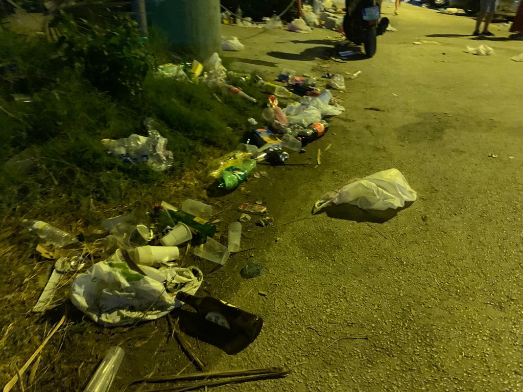 Nuestra tierra se convirtió anoche en un gran parque de atracciones del esperpento: colas interminables para llegar, imposible aparcar y miles y miles de personas que utilizaron nuestro pueblo como un gran basurero o bien para miccionar, beber alcohol en la vía pública y dejar por los suelos la imagen de nuestra querida tierra.