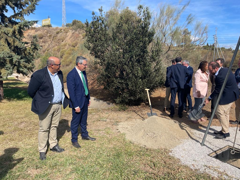 La consejera de Agricultura, Pesca, Agua y Desarrollo Rural, Carmen Crespo, ha colocado este viernes la primera piedra de las obras de emergencia de la conexión del tratamiento terciario de la Estación Depuradora de Aguas Residuales (EDAR) de Rincón de la Victoria con los regadíos del Sector 8 del Plan Guaro, con la presencia de nuestro presidente, Jesús Lupiáñez, y nuestra secretaria general y parlamentaria, Rocío Ruiz.