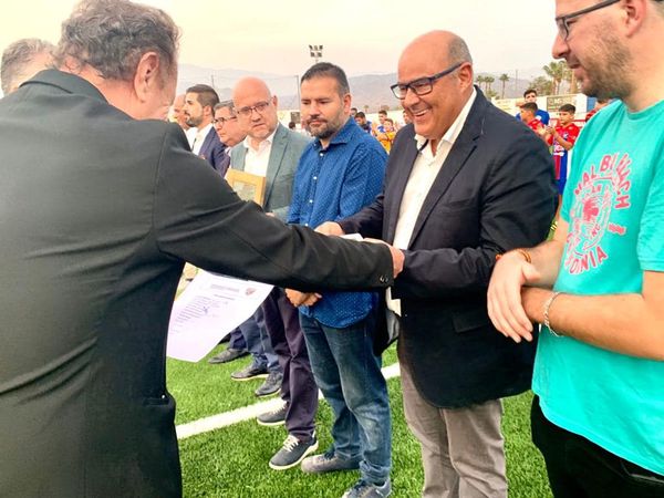 La Unión Deportiva Torre del Mar ha reconocido en los prolegómenos del encuentro de hoy la labor del Partido Popular y le ha hecho entrega a nuestro presidente, Jesús Lupiáñez, de un reconocimiento sobre el césped del Juan Manuel Azuaga.