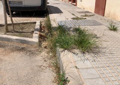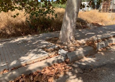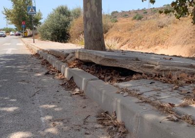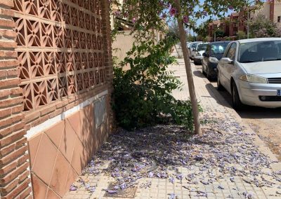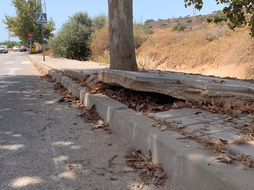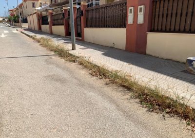 Ocurre, como ya hemos comentado, en la inmensa mayoría de urbanizaciones. En Villas de Almayate la dejadez es bien patente: aceras levantadas, maleza en esas mismas aceras, árboles que no son podados y ocupan el paso de la gente y amenazan con llegar a la carretera, asfalto en mal estado, suciedad, falta de limpieza… En la época de Navidad colocaron, en varias calles, arbolitos que estuvieron un tiempo sin señalizar y cuyas jardineras arrancaron varios bajos de algunos coches, según nos denunciaron estos mismos vecinos en su día.